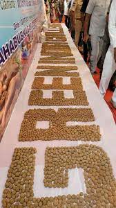 പത്ത് ദിവസത്തിനുള്ളിൽ 2.08 കോടി വിത്തുകൾ കൊണ്ട് ഏറ്റവും നീളം കൂടിയ ഇംഗ്ലീഷ് വാചകം പൂര്ത്തിയാക്കി ഗിന്നസ് റെക്കോർഡ് ബുക്കിൽ ഇടംനേടിയിരിക്കുകയാണ് തെലങ്കാനയിലെ മഹാബൂബ് നഗറിലെ വനിതാ സ്വാശ്രയ സംഘം. മണ്ണും കമ്പോസ്റ്റും ചേർത്തുള്ള മിശ്രിതത്തിൽ പൊതിഞ്ഞ് ഉണക്കിയ വിത്തുകളാണ് ‘സീഡ് ബോൾ’. ഇത് ഉപയോഗിച്ചാണ് വനിതകൾ വാചകം പൂര്ത്തിയാക്കിയത്.