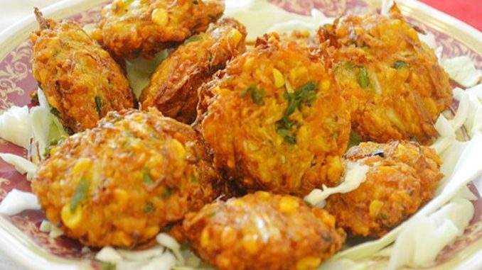 ക്യാബേജ് മുതൽ ഇഞ്ചി വരെയുള്ള ചേരുവകൾ ഉപ്പു ഇട്ടതിനു ശേഷം കൈ കൊണ്ട് നന്നായി തിരുമ്മി മിക്സ് ചെയ്യുക. ഒട്ടും വെള്ളം തളിക്കരുത്. അൽപ സമയത്തിനുള്ളിൽ തന്നെ പച്ചക്കറികളിൽ നിന്നും വെള്ളം ഊറി വരുന്നതായിരിക്കും.ഈ നനവിലായിരിക്കണം കടലമാവും അരിപ്പൊടിയും മുളകുപൊടിയും ഇട്ടു മിക്സ് ചെയ്യേണ്ടത്. ഇനി പരിപ്പുവടയുടെ ആകൃതിയിൽ ചെറിയ വടകളാക്കി ചൂടായ എണ്ണയിൽ വറുത്തു കോരുക.