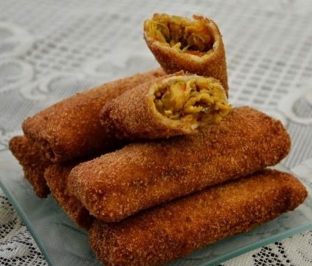 ചേരുവകളെല്ലാം പാകത്തിന് വെള്ളം ചേർത്ത് ലൂസ് ആക്കി മാവ് കലക്കി വെക്കുക. ഒരു പാൻ ചൂടാക്കി ഒരു തവിയിൽ മാവ് ഒഴിച്ച് ചെറിയ പത്തിരിയായി ചുട്ട് അതിന് മുകളിൽ തയ്യാറാക്കിയ ചിക്കൻ മസാല വെച്ച് പത്തിരി രണ്ട് സൈഡിൽ നിന്നും മടക്കി റോൾ ചെയ്തെടുക്കുക. പത്തിരി ചുട്ട ഉടനെ തന്നെ റോൾ ചെയ്യണം. പത്തിരിയുടെ ചൂട് പോയാൽ റോൾ ഒട്ടിപ്പിടിക്കില്ല. ഇത് മുട്ട കലക്കിയതിൽ മുക്കി ബ്രെഡ് പൊടിച്ചതിൽ റോൾ ചെയ്ത് ഓയിലിൽ ഗോൾഡൻ നിറത്തിൽ പൊരിച്ചെടുക്കുക.