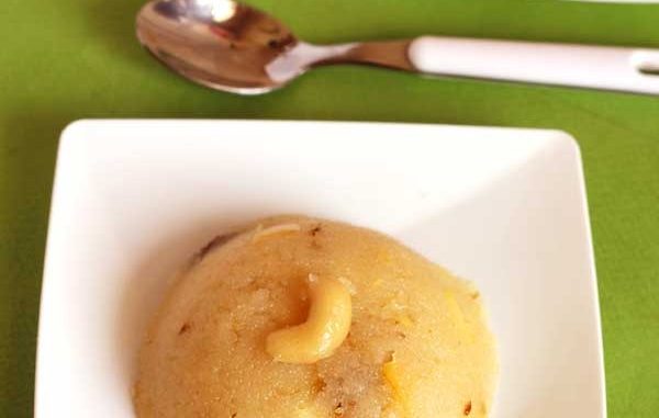 അല്പം നെയ്യിൽ നുറുക്കിയ നട്സ് വറുത്തു മാറ്റി വെക്കുക. റവയും ചുവന്നു പോകാത്ത വിധം നന്നായി വറുത്തു മാറ്റുക.കുറച്ചു നെയ്യൊഴിച്ചു ചെറുതായി അരിഞ്ഞ ആപ്പിൾ വഴറ്റുക.അതിലേക്ക് പച്ചസാര ചേർത്ത് കൊടുക്കുക.പഞ്ചസാര അലിഞ്ഞു വരുമ്പോൾ വറുത്ത റവ ചേർക്കുക.തിളച്ച വെള്ളവും പാലും കൂടി ചേർത്ത് യോജിപ്പിക്കുക.ഏലക്കാപ്പൊടി കൂടെ ചേർത്ത് കൊടുക്കുക.അല്പാല്പമായി നെയ്യൊഴിച്ചു കൊടുക്കുക.ചെറുതീയിൽ വച്ചു തുടരെ ഇളക്കുക.പാത്രത്തിൽ നിന്നു വിട്ടു വരുന്ന പരുവമായാൽ അടുപ്പിൽ നിന്നും വാങ്ങി വെക്കാം